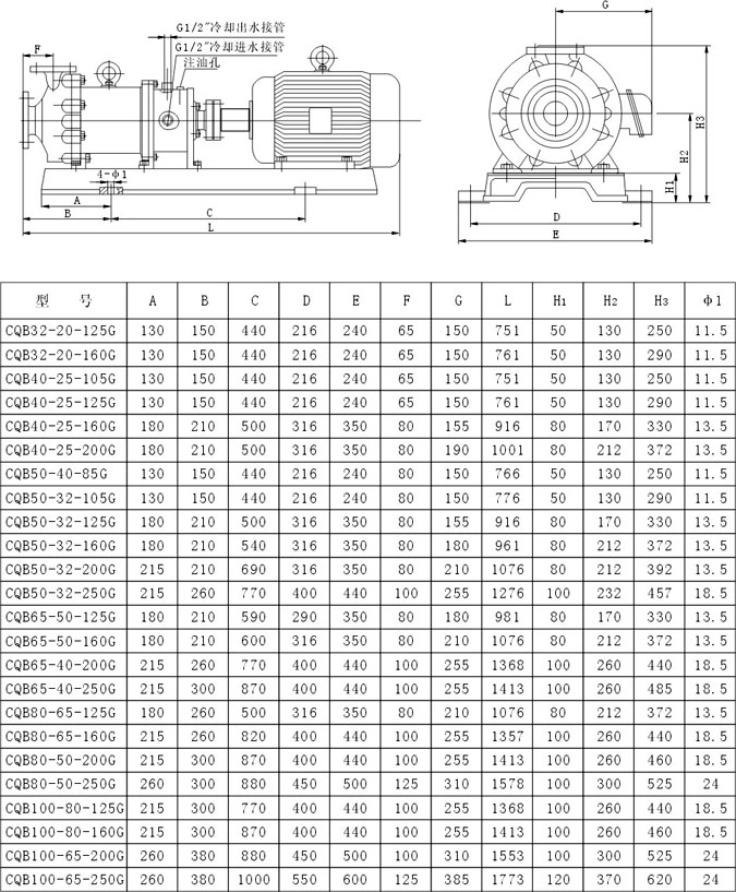 CQB-G高温磁力泵,适用于输送系统工作压力小于1.6MPa,温度不超过280度,密度不大于1840kg/m3,粘度不大于30cm2/S的不喊硬颗粒和纤维的液体
